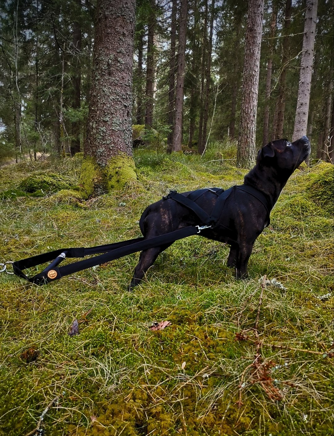 Dragpåhänget är tillverkat för att tåla regelbunden användning och är justerat för att ge ett jämnt och tryggt motstånd när hunden drar. Det erbjuder en utmärkt kombination av styrka och smidighet – perfekt för ekipage som vill komplettera sin dragträning på ett säkert sätt.